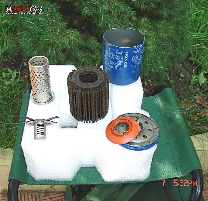 После переборки двигателя, первые километры я проездил используя образец под номером 15400-PLM-А01. Затем поменял его на 15400-PR3-014. В нём я не обнаружил внешних признаков, по которым можно было бы определить, что мне довелось использовать кустарщину. В принципе, примерно так выглядят внутренности любого фильтра, по цене от ноля до 250 руб. Причина скорой замены была в том, что лампа давления масла стала гаснуть с задержкой. Если в процессе ремонта, была допущен просчет, то судя по всему следы стоило искать внутри фильтра. Меня ждала полная лажа.