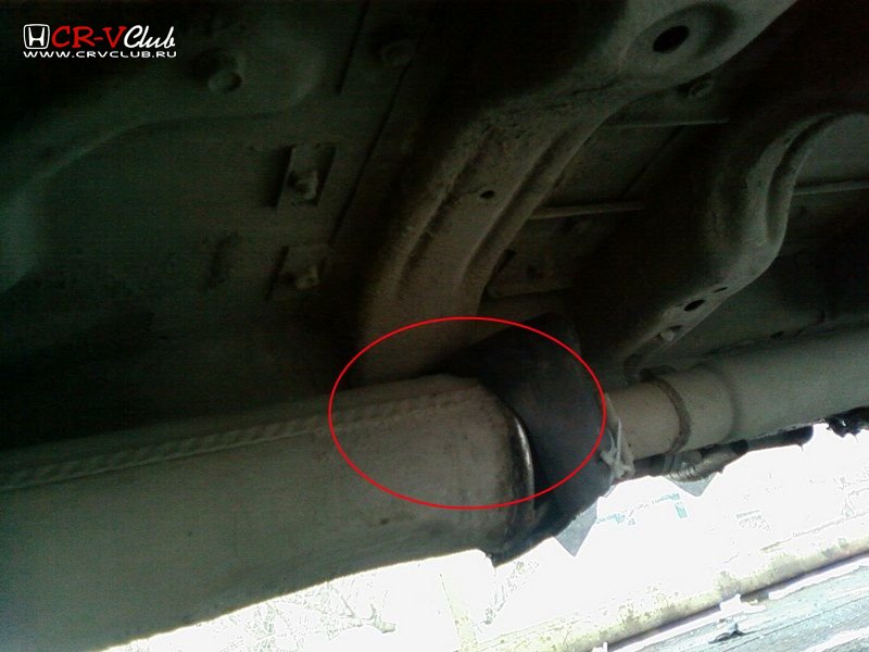 Кронштейн выхлопной трубы просто долбится об гайку стабилизатора (надел резиновую трубку). Фланец трубы зажал штангу стабилизатора так, что пришлось монтажкой отжимать от стабилизатора, чтобы проложить резинку.