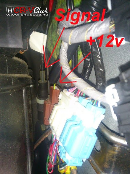 Снимаем бардачок и тогда открывается вид на штекера. Смотрим по правой стороне. Там стоит переходная муфта на сигнал и штекер с переходом кабеля на жёлтый с зелёной полоской и серыми точками. Теперь понятно, почему не мог его найти.