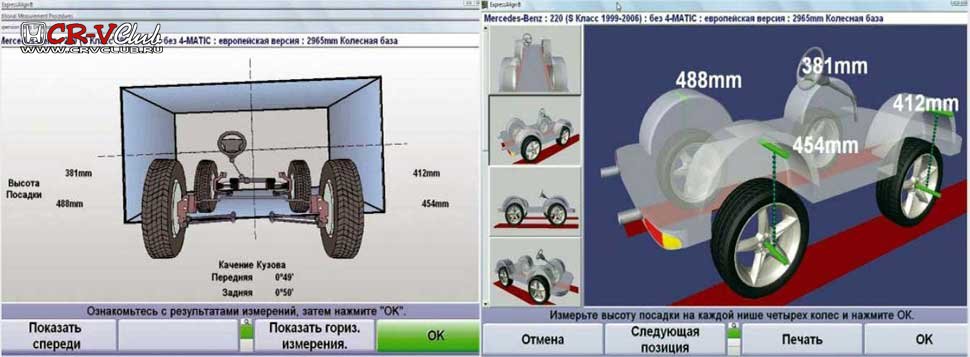 то появляется возможность измерений кузова не только в горизонтальной плоскости, но и в вертикальной, такие как силовой рычаг крена, смещение продольного наклона оси поворота относительно центра вращения, отклонение оси симметрии кузова, свес кузова, крен кузова, просадку пружин и т.д.