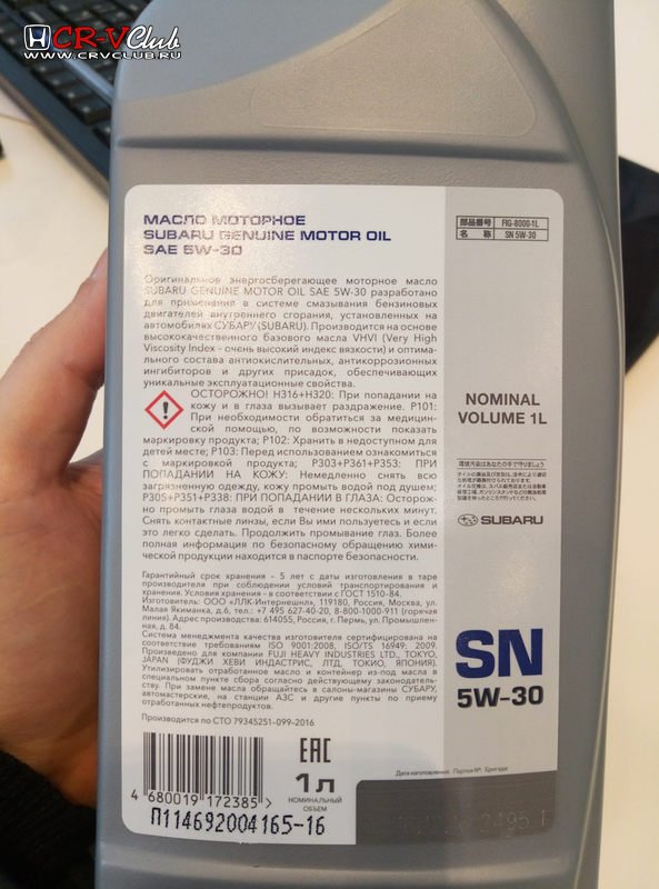 Ни какой эксклюзивной формулы Honda, в трибологии, не существует, это все выдумки мракетологов)).  ____________________________________________________________________________________________________________________ Слом стереотипов, оригинальное масло "Subaru" произведено LLC Пермь Россия.