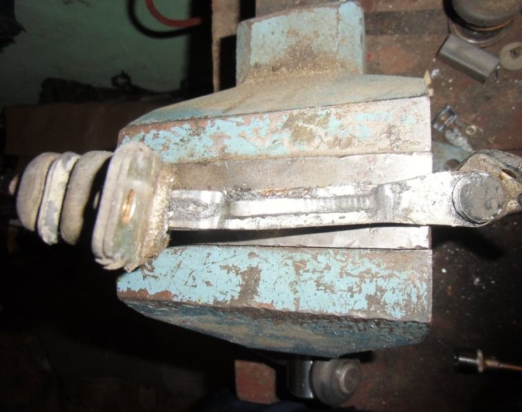Палец,в оригинале,чутка торчит снизу кронштейна, я его сточил болгаркой за подлицо,раскачал и выбил расклинивая шляпку и тягу,ни в коем случае не снизу(опять заклепаешь)