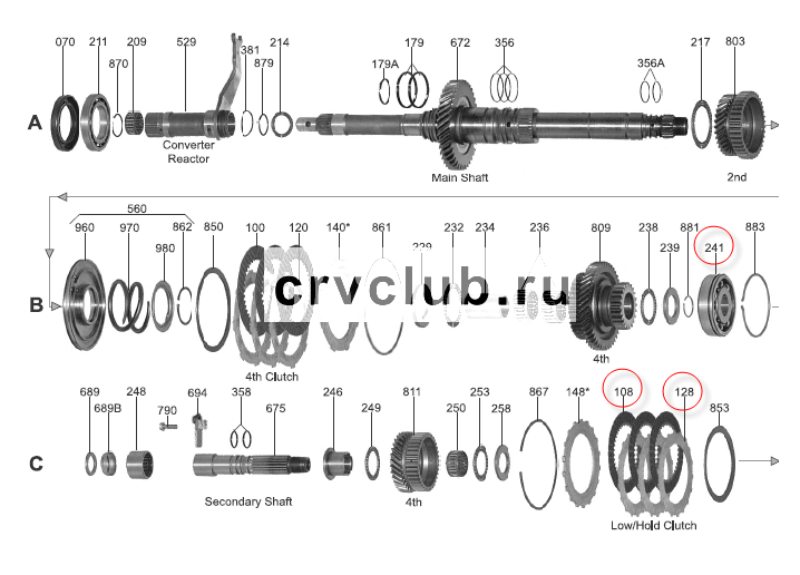 перечислены пакеты 2й-3й-4й передач, конктерно для двух КПП.