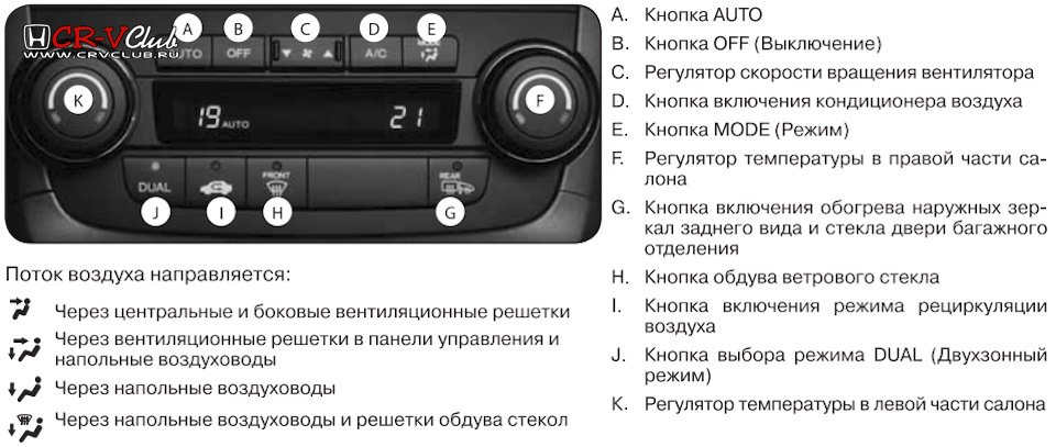 А и AUTO | Разрыв в цепи датчика температуры в салоне автомобиля В и AUTO | Короткое замыкание в цепи датчика температуры в салоне автомобиля С и AUTO | Разрыв в цепи датчика температуры наружного воздуха D и AUTO | Короткое замыкание в цепи датчика температуры наружного воздуха Е и AUTO | Разрыв в цепи датчика солнечного света F и AUTO | Короткое замыкание в цепи датчика солнечного света G и AUTO | Разрыв в цепи датчика температуры испарителя H и AUTO | Короткое замыкание в цепи датчика температуры испарителя J и AUTO | Разрыв в цепи электропривода управления смесителем воздуха со стороны водителя К и AUTO | Замыкание в цепи электропривода управления смесителем воздуха со стороны водителя L и AUTO | Неисправность в тяге и заслонке смесителя воздуха со стороны водителя, двери или цепи электродвигателя М и AUTO | Разрыв в цепи электропривода управления смесителем воздуха со стороны пассажира N и AUTO | Замыкание в цепи электропривода управления смесителем воздуха со стороны пассажира P и AUTO | Неисправность в тяге и заслонке смесителя воздуха со стороны пассажира, двери или цепи электродвигателя A | Разрыв или короткое замыкание в цепи электропривода управления режимами подачи воздуха B | Неисправность в тягах, заслонках или в цепи электродвигателя C | Разрыв в цепи электропривода управления рециркуляцией. D | Короткое замыкание в цепи электродвигателя управления рециркуляцией. E | Неисправность в тягах, заслонках или в цепи электродвигателя управления рециркуляцией F | Неисправность в цепи электропривода вентилятора салона G | Внутренняя неисправность блока климат-контроля H | Отсутствует связь блока климат-контроля с блоком управления датчиками (сигнал от датчиков VSА) К | Отсутствует связь блока климат-контроля с блоком управления датчиками (сигнал от датчиков ECT) М | Ошибка линии шины связи (шина не работает) N | Разрыв в цепи датчика давления кондиционера P | Короткое замыкание в цепи датчика давления кондиционера