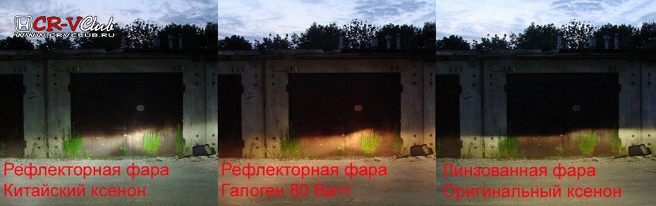 Ниже на фотографиях в качестве примера представлено реальное сравнение света одной и той же рефлекторной фары с разными лампами: