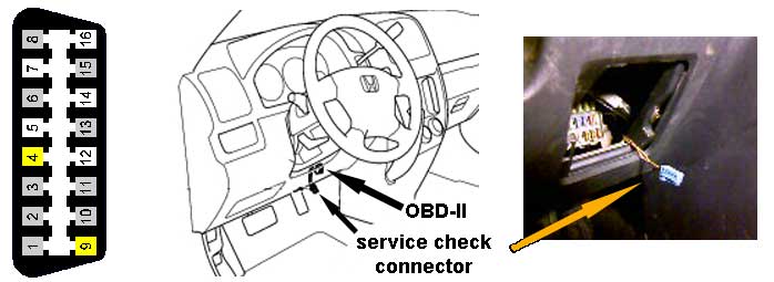 в моделях для Европы: в разъёме OBD-II 9-й контакт пустой. Рядом с OBD-II надо найти SERVICE CHECK CONNECTOR - маленький синий разъём на 2 контакта, болтается на своих проводах (коричнеый и коричневый с желтой полосой) или примотан изолентой к проводам OBD-II и замкнуть проводом или скрепкой контакты этого разъёма.